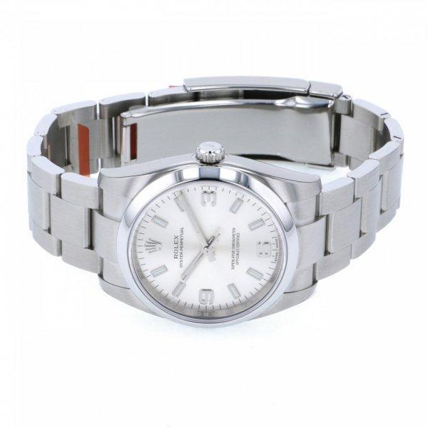 オイスター パーペチュアル 34 はシルバーダイアルとオイスターブレスレットを備える。