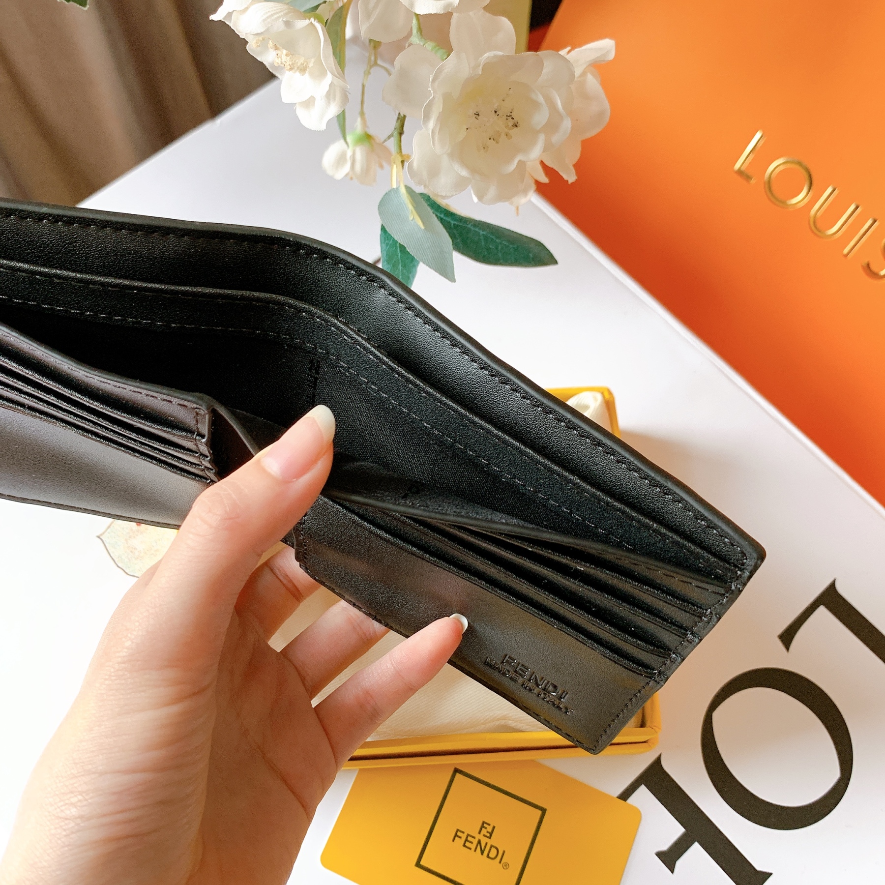 • 型押しされたFFロゴが映えるフェンディのメンズ財布です。小銭入れがないタイプで、すっきりスマートに決まります。